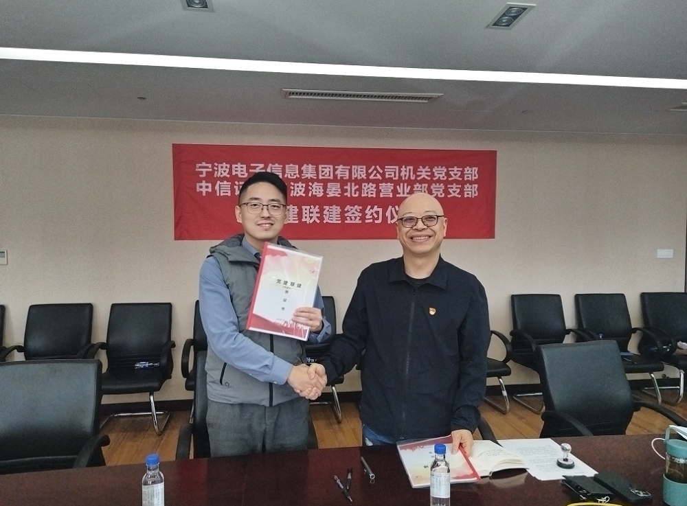 為深入學(xué)習(xí)貫徹黨的二十大精神,全面落實(shí)新時(shí)代黨的建設(shè)總要求,推動(dòng)黨建與業(yè)務(wù)深度融合,4月15日下午,中共寧波電子信息集團(tuán)有限公司委員會(huì)機(jī)關(guān)黨支部與中共中信證券股份有限公司浙江分公司委員會(huì)寧波海晏北路營業(yè)部黨支部在寧波舉行黨建聯(lián)建簽約儀式。雙方圍繞“資源共享、優(yōu)勢互補(bǔ)、協(xié)同發(fā)展”主題,通過簽約共建、專題講座、交流研討等形式,共謀黨建工作新路徑,共筑事業(yè)發(fā)展新格局。